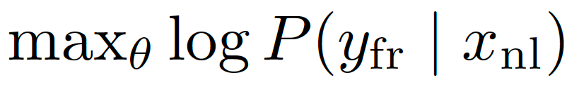 that is, adjust the model parameters θ to make the model assign the highest possible probability to producing the correct French translation yfr​ given the Dutch input xnl (using log⁡ is just a convenient way to work with probabilities during training). Translations that fail to keep text exactly faithful to what the original text says will be strongly penalized by training data and evaluation.